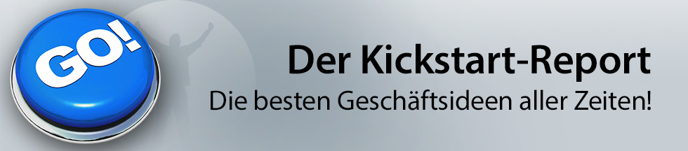 Es gibt sie - vor allem im Internet: Zahlreiche unterentwickelte oder sogar noch völlig unentdeckte Geschäftsideen, die Sie nur noch umsetzen müssen. Der Kickstart-Report nennt die besten Geschäftsideen - sauber und umfassend ausrecherchiert von mir persönlich, und so präsentiert, dass Sie jede einzelne dieser Ideen 1:1 und sofort umsetzen können.